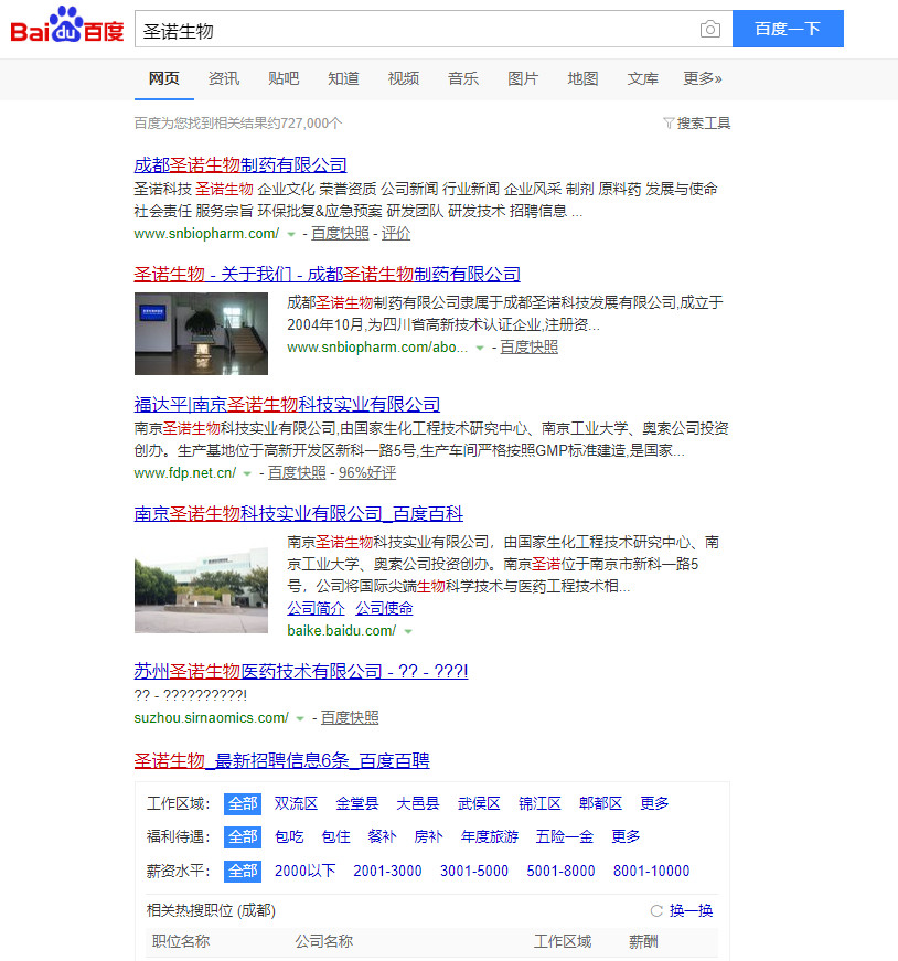 首先打開搜索界面,輸入關(guān)鍵詞:圣諾生物